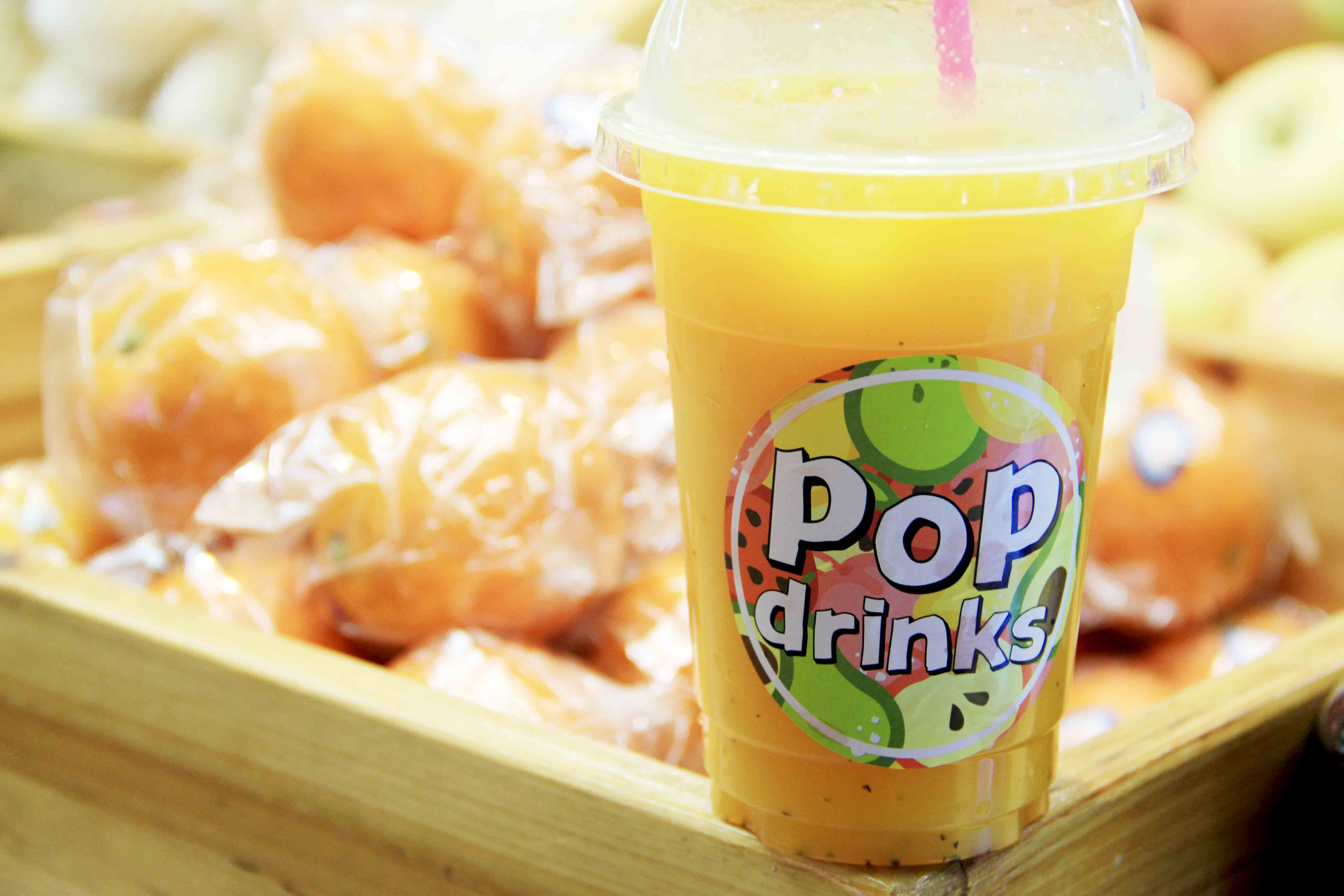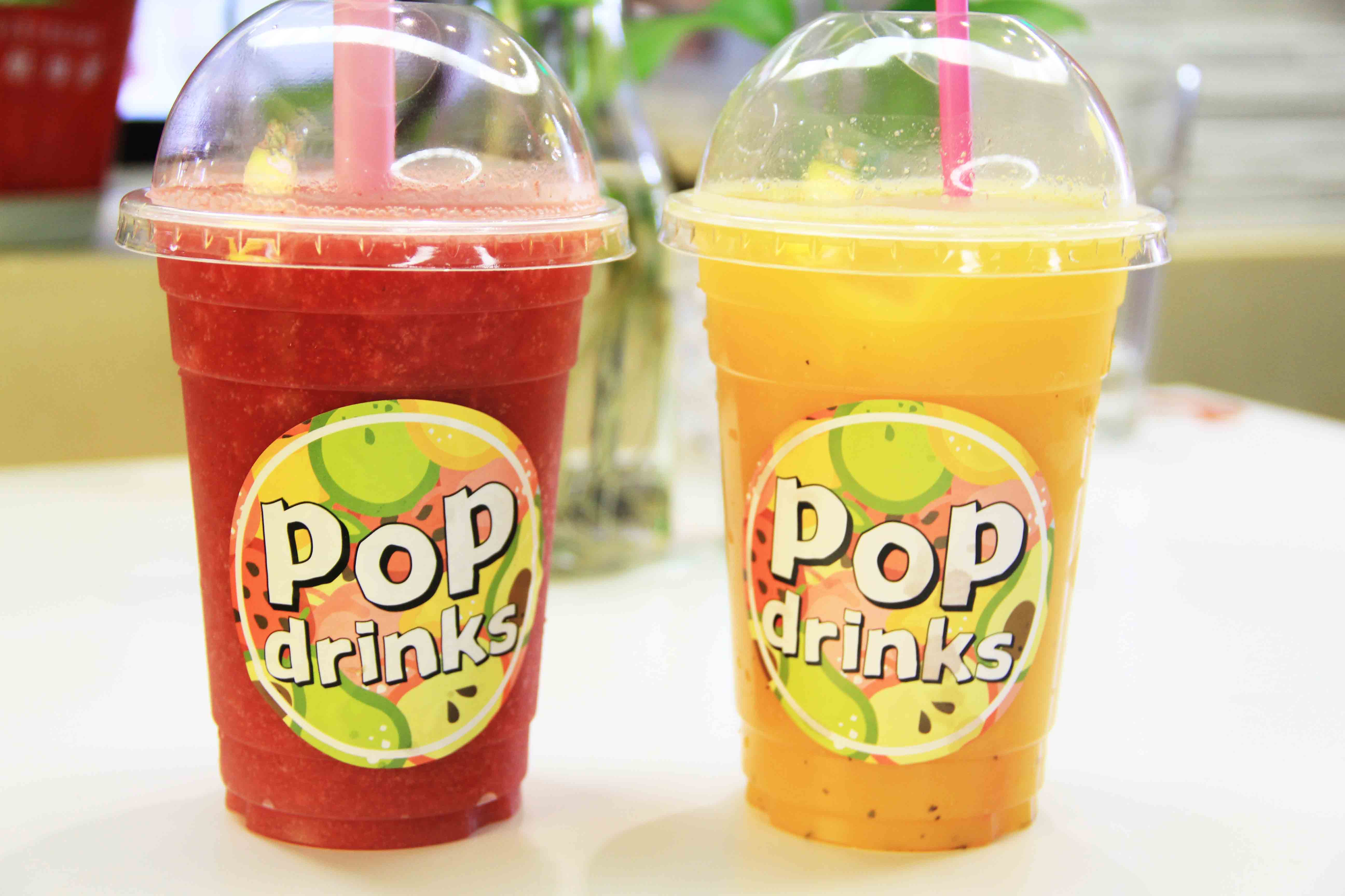 看看这杯冰草莓汁,满满一大杯,味道浓郁到爆。配合季节水果,POP drinks的老板也会随时mix。鲜榨混搭的果汁更是超级新鲜可口!这杯橙+百香果,味道清新爽口,最适合夏季。