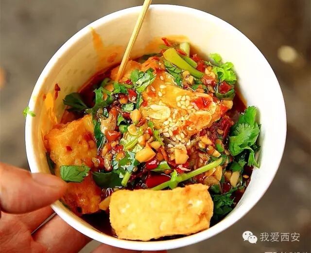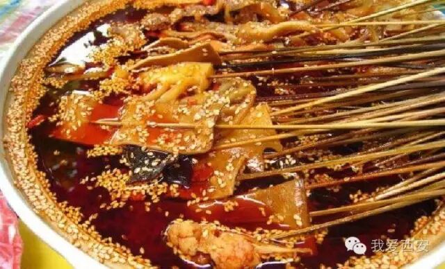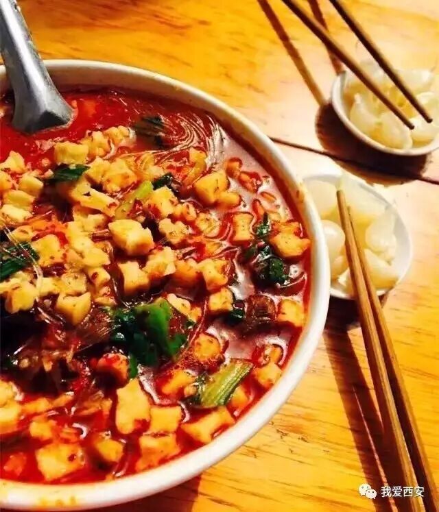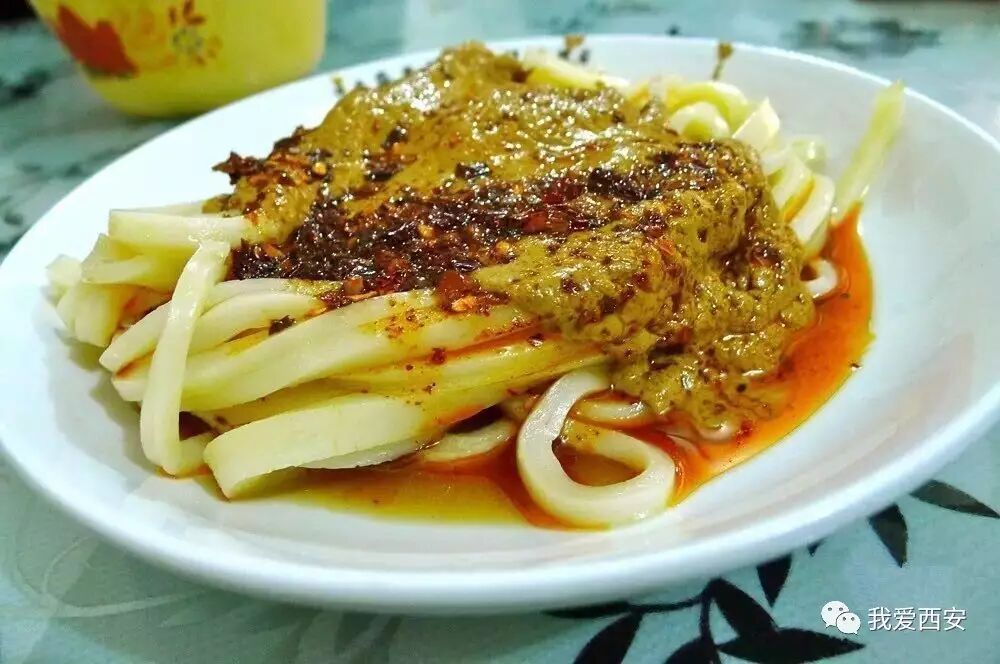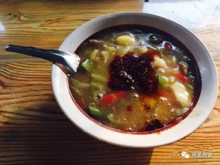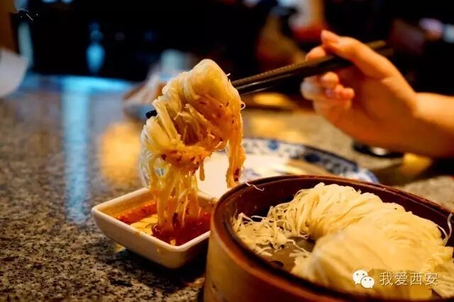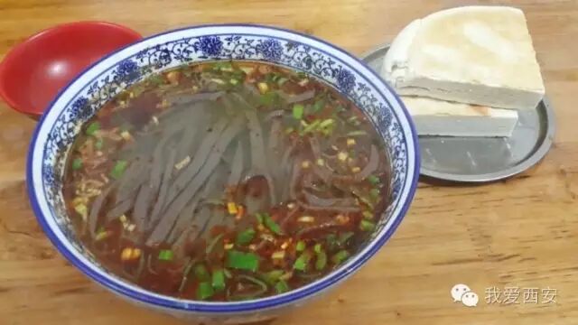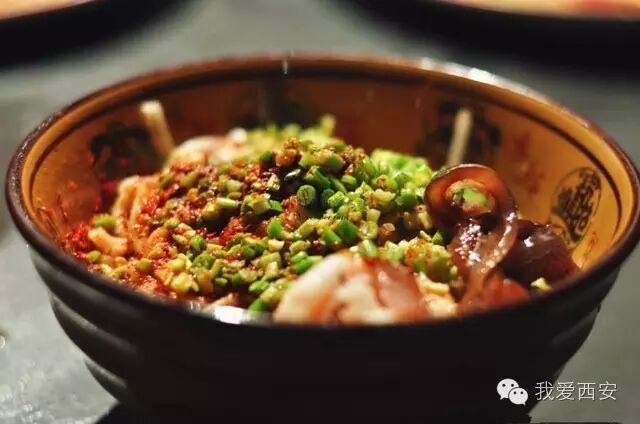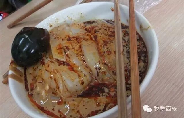 西安特色美食之一,回民街上很火的一家店,跟我们常吃的西安凉皮大不一样,注意,这个是酿皮!会放很多辣子和麻酱,那个皮做法也不一样!