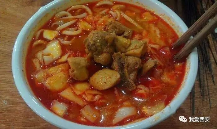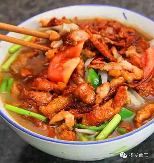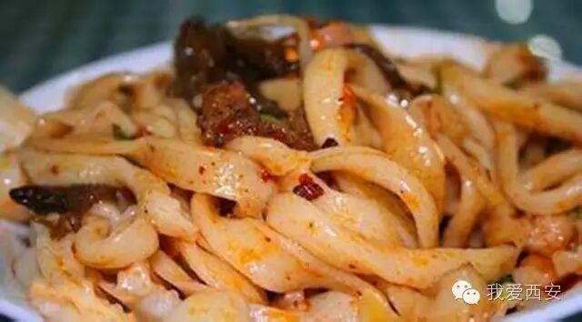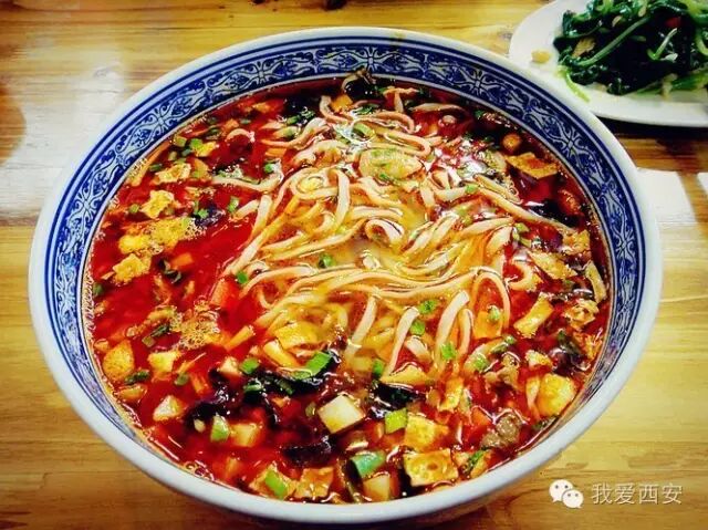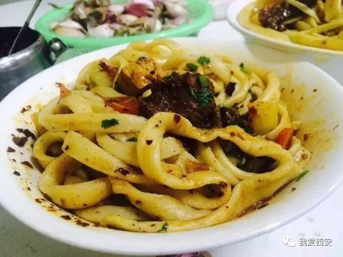 他家的面条比较粗,面质很硬,很有嚼劲,配菜的话有牛肉块,豆腐干,菜花,土豆块等,反正吃起来很香,适合陕西人的口味!很地道的陕西面食,推荐尝尝!顺便说一句,他家面馆是嘉哥见过美女最多的面馆!妹子们,你们就这样吃面,就不怕胖?