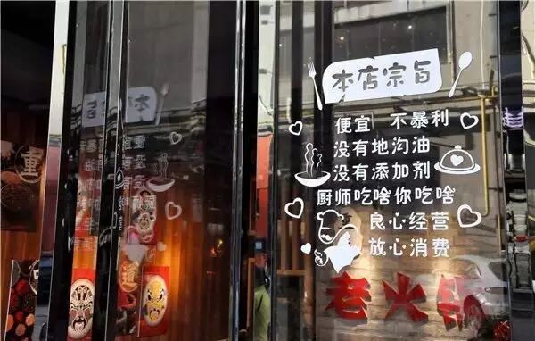 正宗的重庆火锅,门口的玻璃上印着本店的宗旨,格外显眼:便宜、不暴利,没有地沟油、没有添加剂;厨师吃啥你吃啥,良心经营、放心消费!