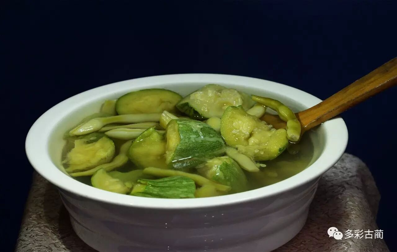 这道菜品是古蔺家家户户都会做的经典菜肴之一,做法也及其简单:瓜儿拍碎(口感稍好),豆豆撕去茎叶,便可放入水中,煮熟即可。升级版的还可以往里加入:茄子、土豆、玉米粒等,味道醇香,饭后喝碗汤,还能起到稀释油腻等作用。