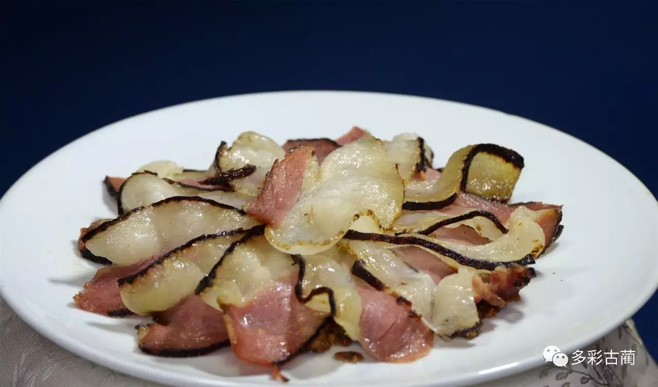 熏好的腊肉,表里一致,煮熟切成片,透明发亮,色泽鲜艳,黄里透红,笨点糊海椒,吃起来味道醇香,肥不腻口,瘦不塞牙,不仅风味独特,而且具有开胃、去寒、消食等功能。古蔺老腊肉保持了色、香、味、形俱佳的特点,素有“一家煮肉百家香”的赞语。