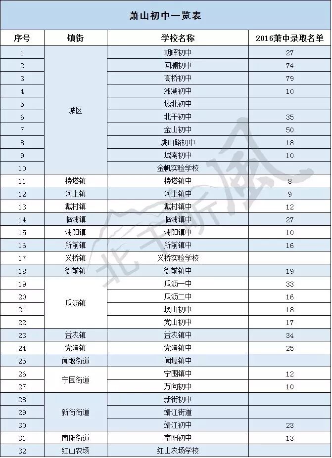 (学校排名不分先后,数据来源萧山中学网站,可能与实际有所出入,仅作参考)