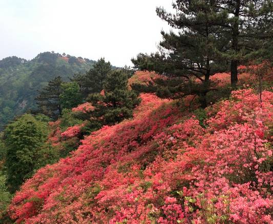 有“天下第一龟”(-_-)之称的麻城龟峰山龟背岭上有连续生长周期达百万年、连片面积达数十万亩的古杜鹃群落,每年的4月下旬到5月中旬,是这里赏花的最好时段。“深情花巷通幽处,林下花径染落红。”
