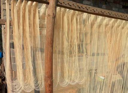 麻城油面,采用上白面粉加适量芝麻油和盐,由人工拉成。形成银丝,纤细美观。