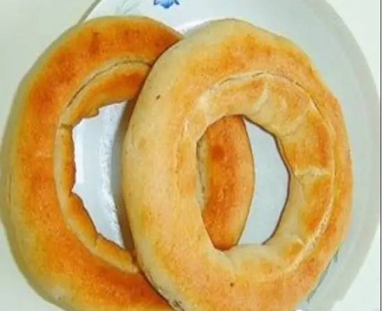 甘谷酥圈圈是以精细白面为主料,用上等胡麻油配以各味香料,精工制作而成。其制作方法是将面粉发酵,添加碱水去酸,和以胡麻油,配上鸡蛋,椒末,姜末,桂皮,精盐等佐料,经过精揉细搓后,掐成剂子,并拉条,再揉成大小粗细均匀的环状,形如微缩的救生圈,故又名“曲连”。然后将姜黄、麻油等配置好的糊状物抹在面圈上,置于上下都有炭火的鏊中双面烘烤而成,酥圈圈烤成出锅时,香气扑鼻,诱人垂涎,往往不待热气散尽,就被抢购一空。