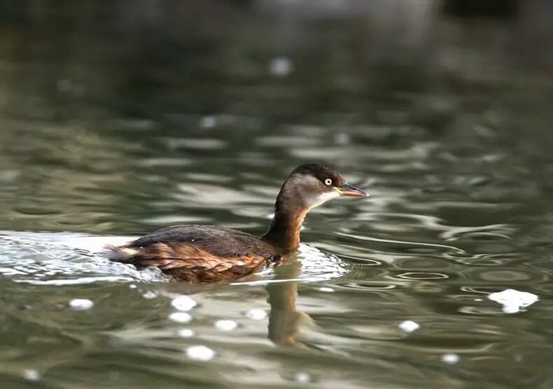 偶尔还会看到一只小鸊鷉时而在水面高速飞奔,时而潜入水底。