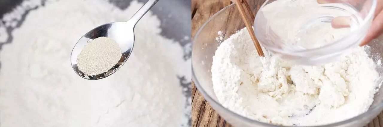 ① 面粉50酵母1的比例混合搅拌均匀,加少许盐更加筋道。