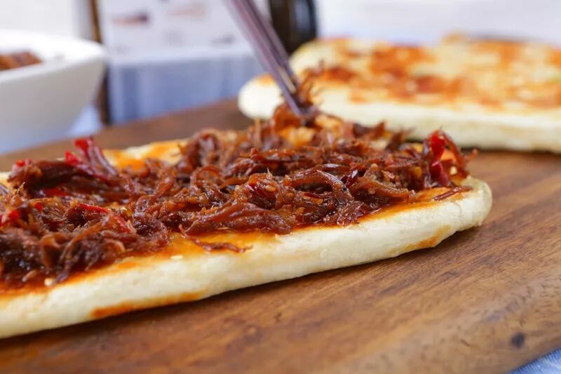 松茸酱还可以卷饼吃,嚼劲十足的松茸酱,裹着饼的香味,回味是微微微微的小辣,好吃到流口水!