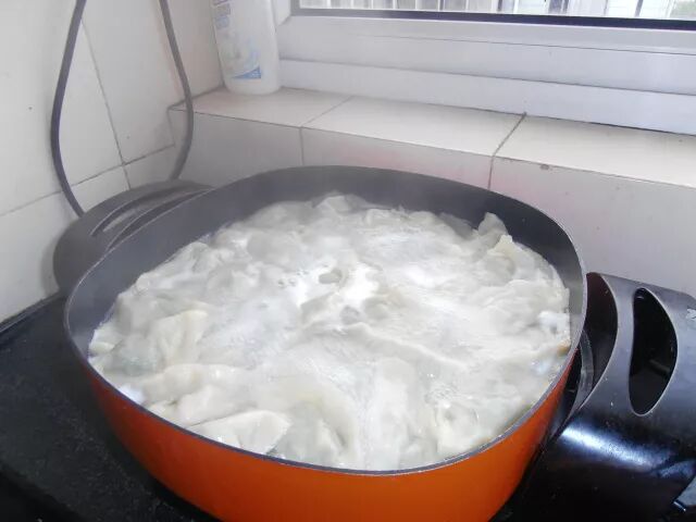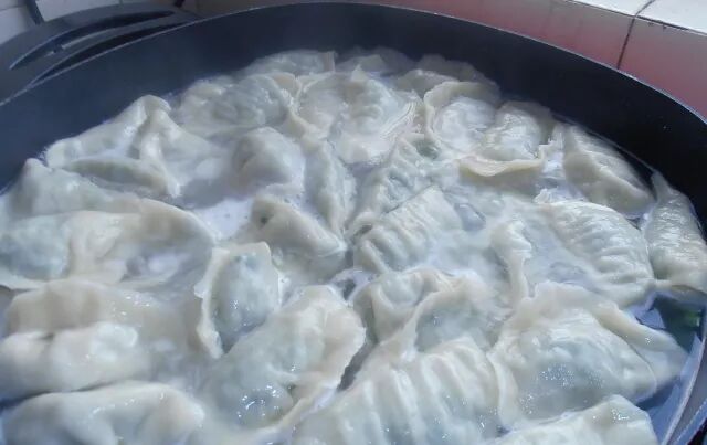 11. 锅内加水烧开,放入饺子,煮至饺子浮起来3次即可捞出。