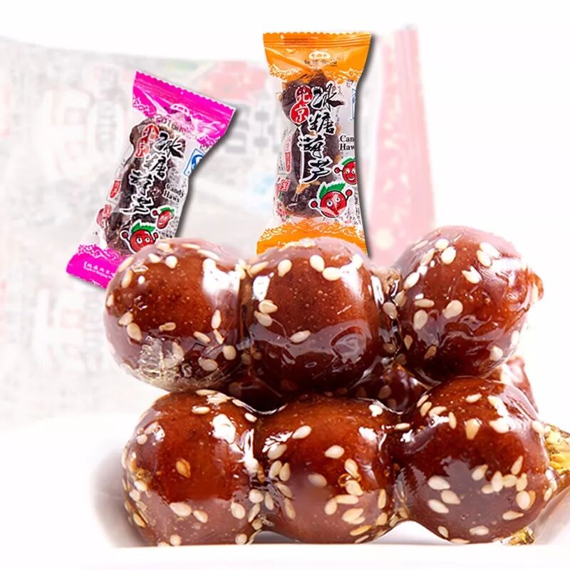 糖葫芦也算得上是帝都的饮食文化符号了,全国各地都不乏标榜“老北京冰糖葫芦”的卖家。现如今这东西大多是在干干净净的玻璃柜台里以及制作成独立包装的样式出售了,以前可不这样。小时候,卖糖葫芦的乃是用一根竹竿一头捆上稻草,把糖葫芦密密麻麻地斜插在上面,宛如大号狼牙棒。放学时分,拄着这件兵器往校门口一站,摘下草帽一声吆喝,这气势比霹雳火秦明不知道高到哪里去了。
