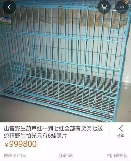 @singy:他傻呀!!活体葫芦娃中的六娃早在十年前就已经被我以3600万刀的价格拍下收藏,从来没配过种,所以市场上不存在36万的活体葫芦娃。