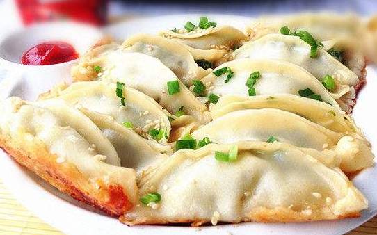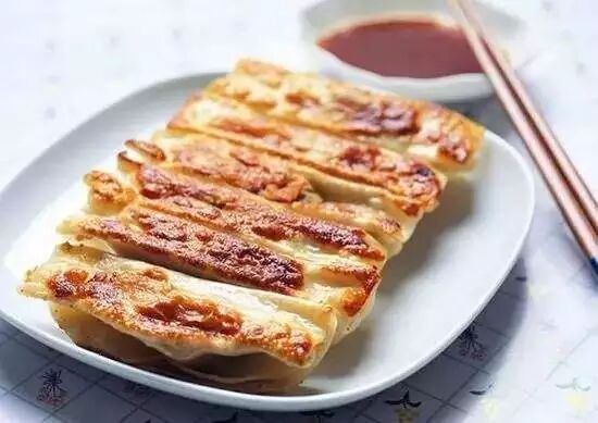 8.平底锅倒入一勺色拉油,将锅贴分别排入,开中火