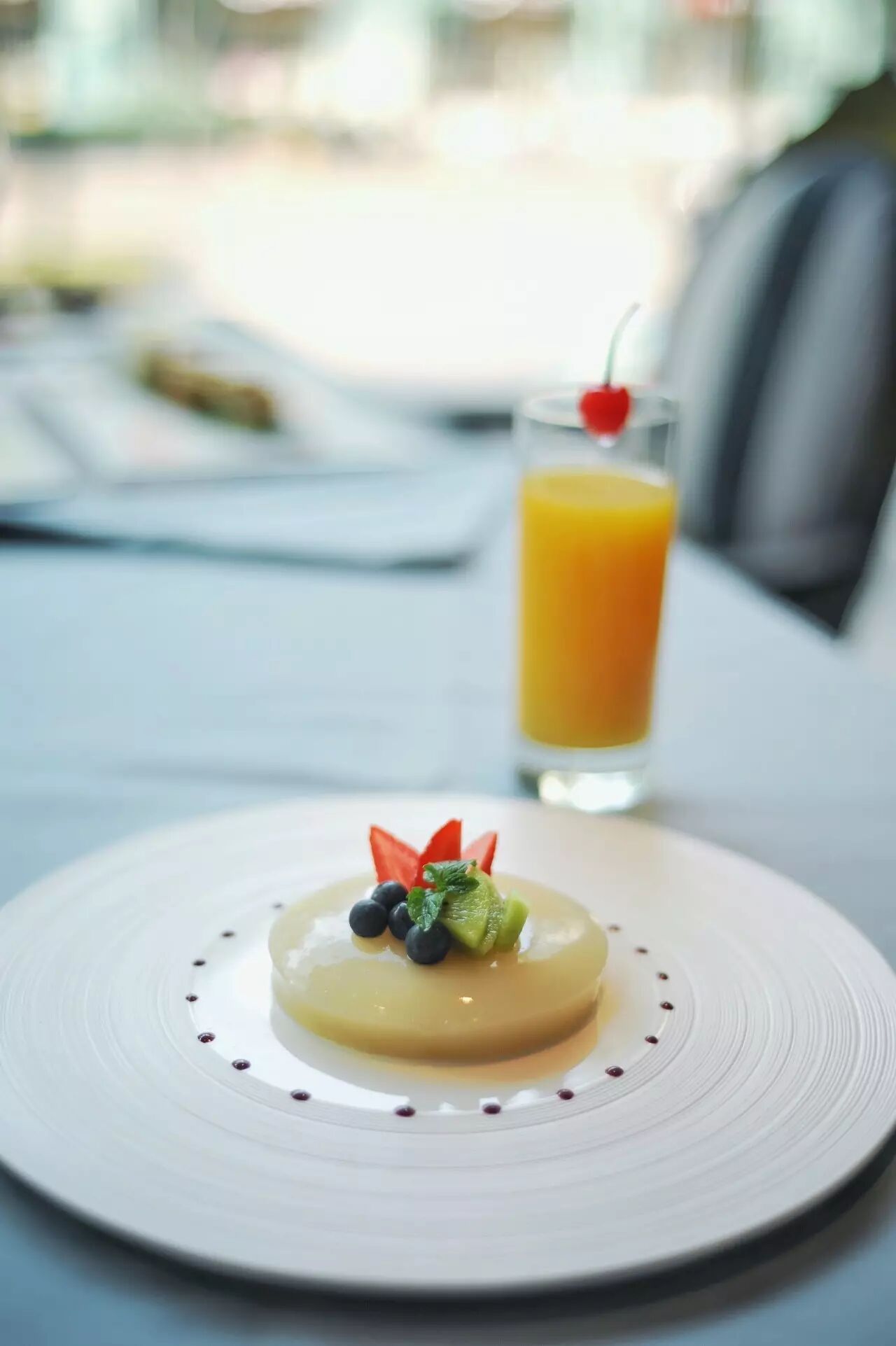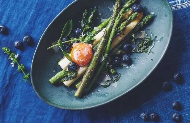 用波尔多白葡萄酒制作的果冻搭配加拿大蓝莓。