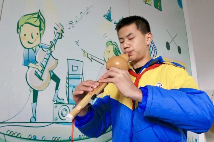 2015年,子涵第一次尝试吹葫芦丝,结果一下子喜欢上了,而且很快上手。他说,学古筝要看筝弦的位置,而葫芦丝不太用眼睛,只要两只手灵活按孔,对于一个盲人而言,更容易些。