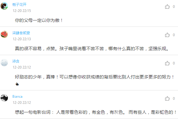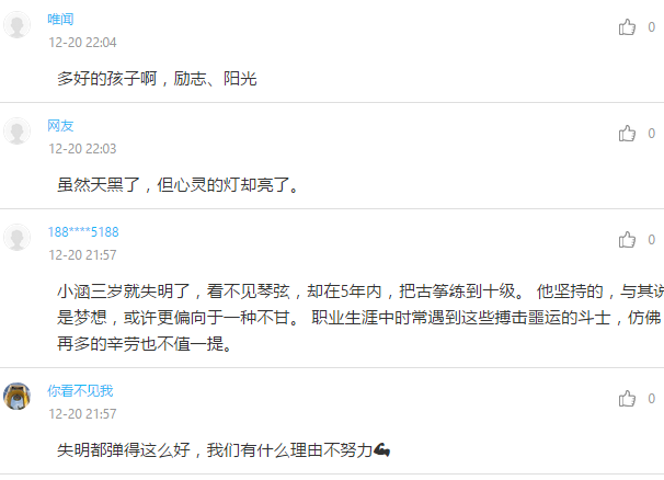 面对学习音乐的过程,子涵从不提辛苦,还玩笑说自己练习太少了。而另一边,赵秀叶告诉记者,子涵是一个很倔强的孩子,他是发自内心喜欢音乐,暑假在家,子涵每天都有做功课,调早上五六点的闹钟,爬起来练习古筝,然后下午的时间练习葫芦丝。