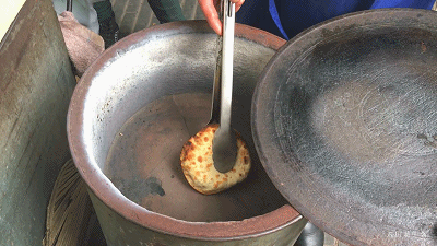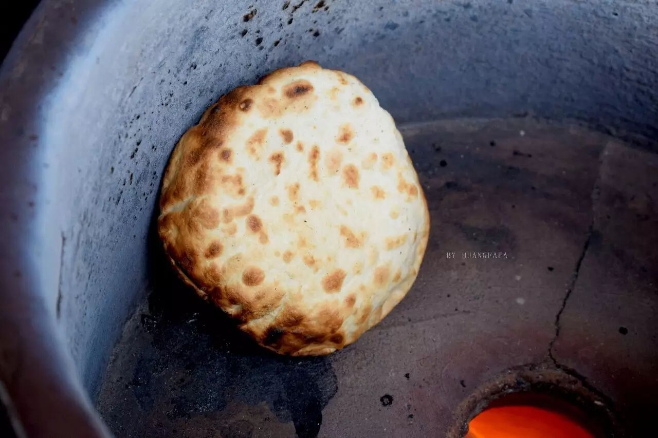 在准备凉粉之前,老板就把锅盔拿到炉子里面加热,软软的锅盔重新变得酥脆起来。