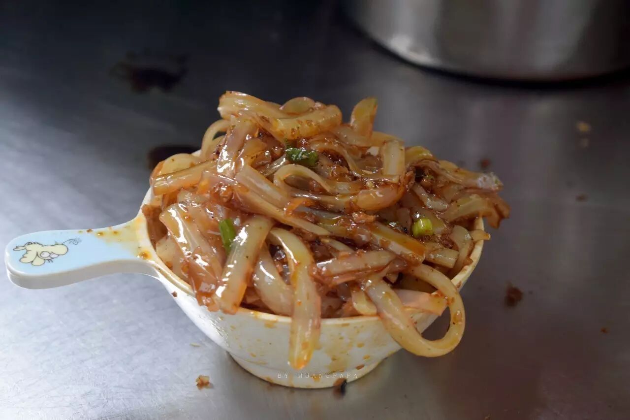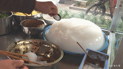 凉粉从刮下来,到拌好放到碗头,也就1分钟的时间,婴儿辅食的小斗碗刚刚好是配一个锅盔的分量。