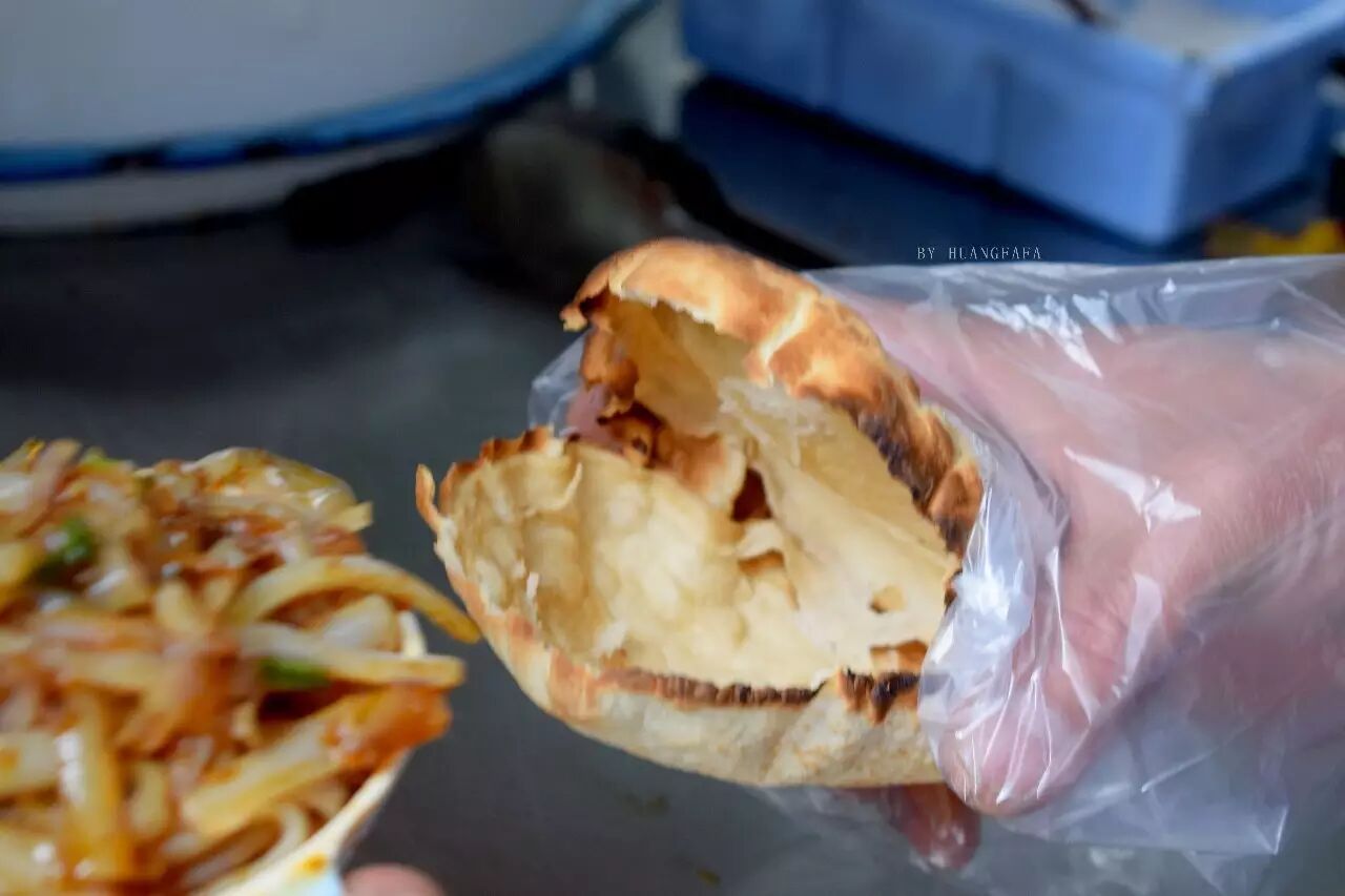 这家锅盔摊摊在很多年前被报道过,其实小有名气,味道没有夸张到让你一口惊艳的程度,但在成都,算是为数不多的正统川北锅盔夹凉粉。