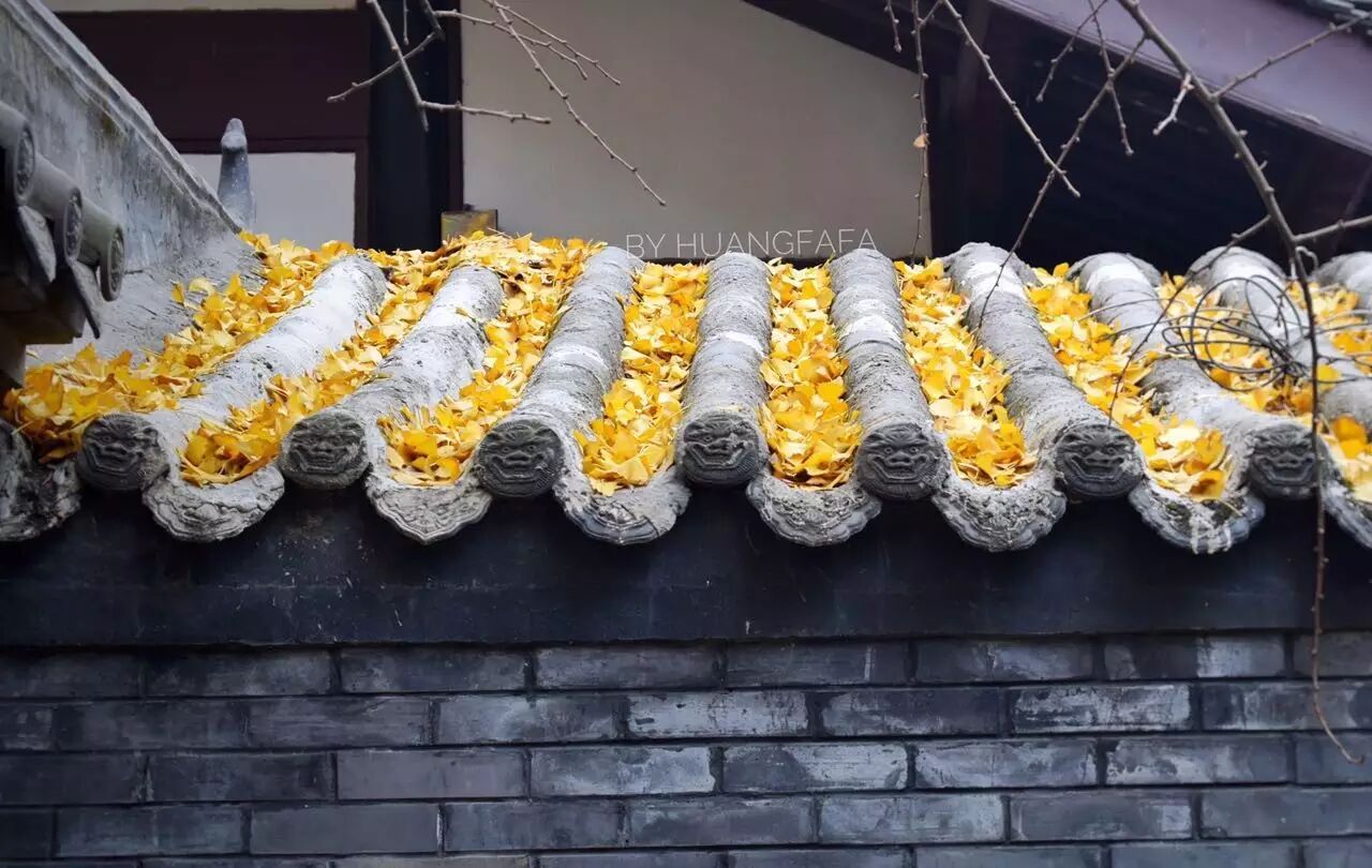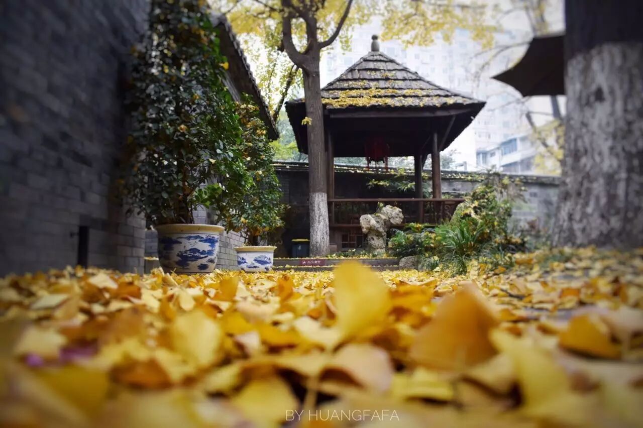 银杏美到原地爆炸,院内院外大大小小的银杏有十多颗,历史最久的有100多年~