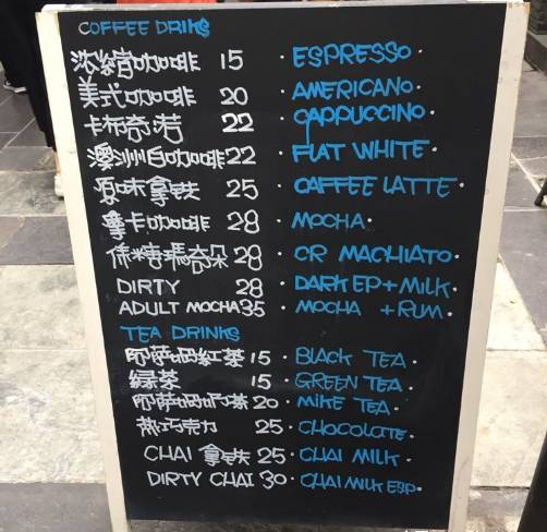 店外有个小黑板,明码标价,比一般咖啡店便宜不少。