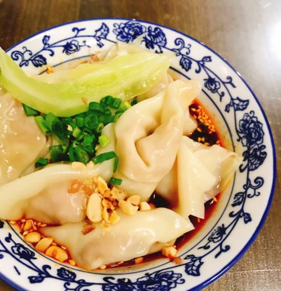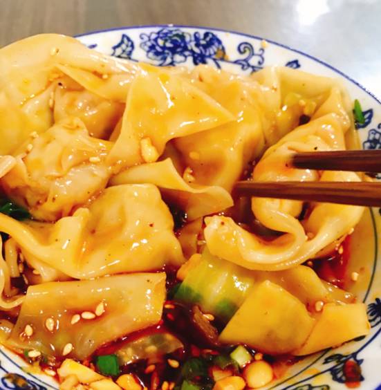 红油抄手里面加了花生碎和芝麻,吃起来除了红油的甜辣味,还有坚果的香气,每次吃完抄手都要把花生颗颗夹来吃了~