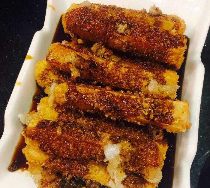 红糖糍粑,人气还是多高,稍微晚点去都没得吃,外面裹了面包糠炸制的更香脆,红糖很粘稠,可以少沾点,有点甜。