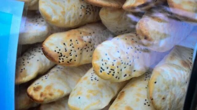 一定要趁热吃!很重要很重要!凉了口感有点影响的。饼的大小刚刚好,瘦长瘦长的,一口咬下去有肉又饼,如果不饿可以吃下好几个。上面撒着孜然,尝起来一点也不油腻。