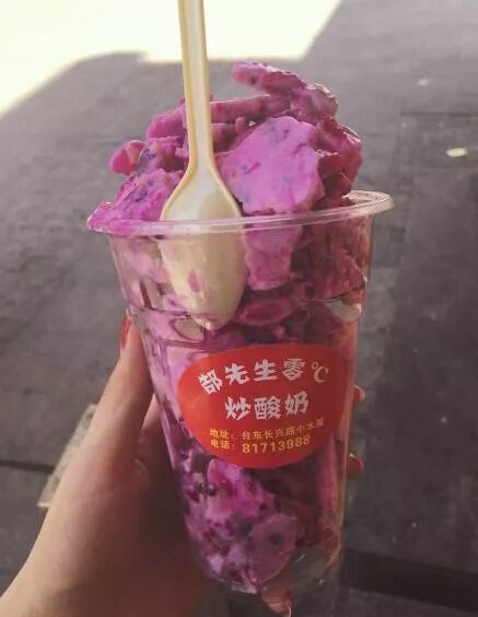 长兴路小木屋的一家小店,只有一个小窗口,可以看见里面炒酸奶的全过程哦!有很多的水果口味:草莓的,黄桃的,菠萝的,抹茶的,香蕉的,水蜜桃的,哈密瓜的,香芋的,奥利奥的……