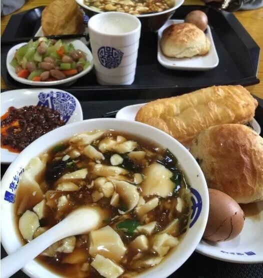 豆腐脑,味道相对偏清淡。素豆腐脑里除了豆花,还有一点点木耳。下面是榨菜,吃之前最好先拌匀。口感还是很嫩很滑的,总体不错。