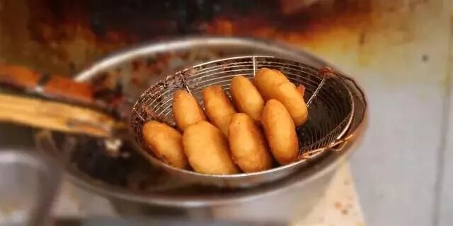 这个夫妻俩经营的店铺,一个揉面下锅,一个捞出来售卖,配合的默契,小小的油炸糕里也都是温馨。