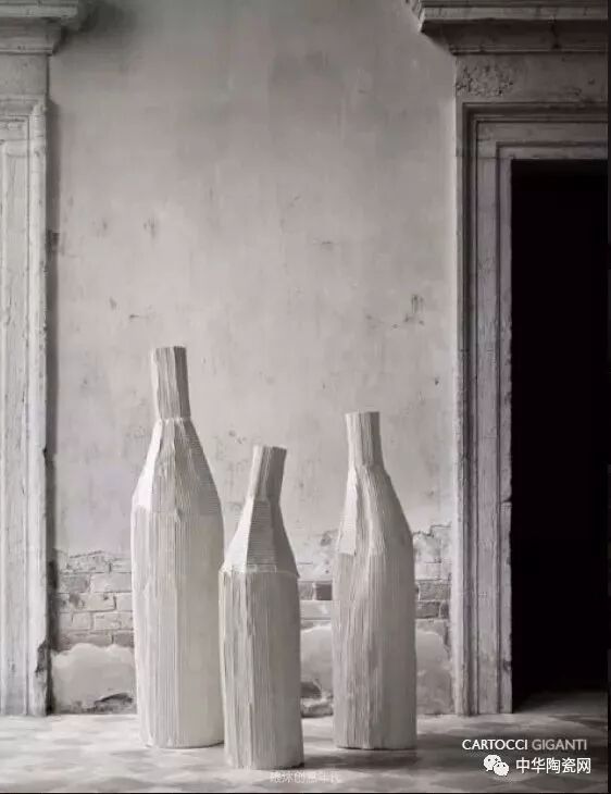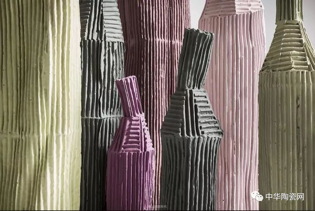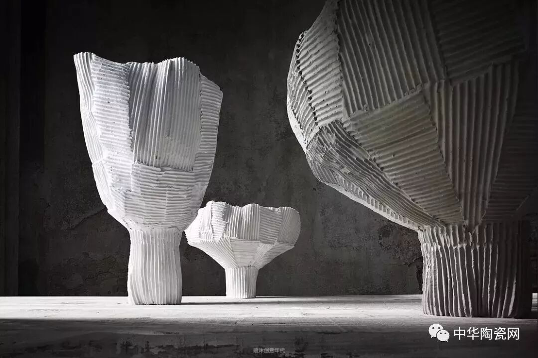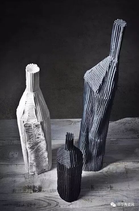 这些作品是用瓦楞纸的压模成型,