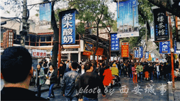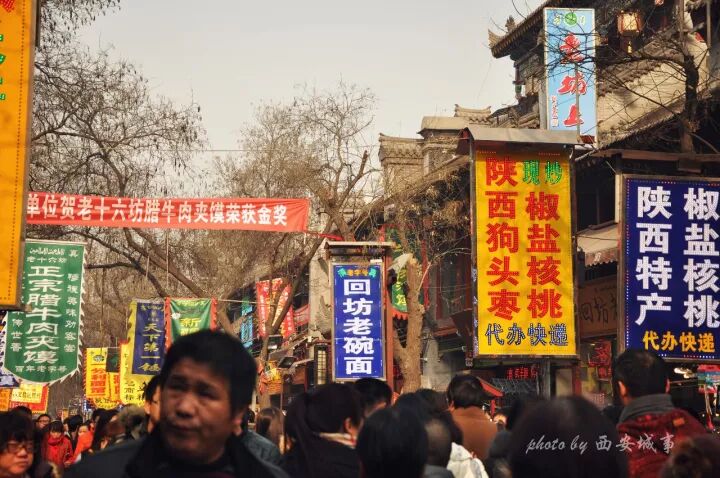 走在回民街,听到最多的声音,除了叫卖,就是“来来来,让一哈”,接着就是电动车刺耳的“滴滴滴”催赶的声音。
