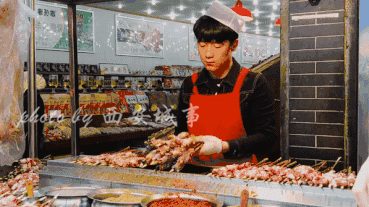 晚上的回民街有着与白天不同的精彩,道路两旁挂着各种LED屏的各种摊铺,各类叫卖声不比白天的热闹少。