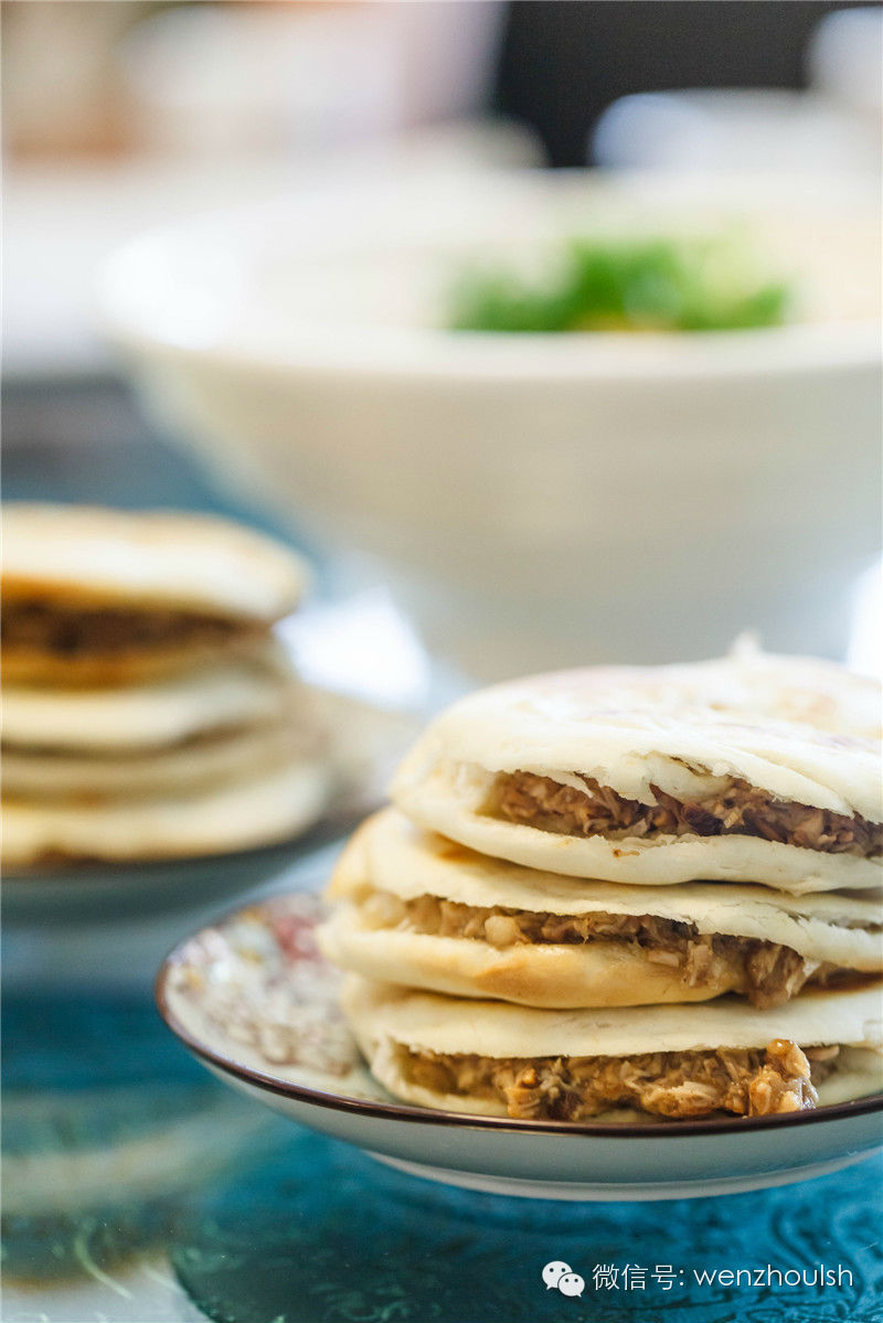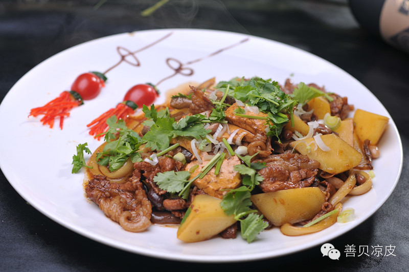 独具陕北特色的肉夹馍是老少皆宜的小吃。善贝凉皮的肉夹馍是明档现制。有猪肉、牛肉、羊肉三种,用的是五花肉,剁得极碎,带着肉汁。