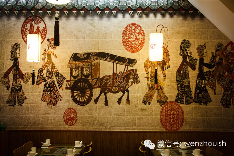 大概是因为老板老张是设计师的关系,店内有不少陕北特色的文化元素的设计、陈列贯穿厅堂——花鼓、兵马俑、皮影……置身其间,从多种细节处,感受陕北风情。