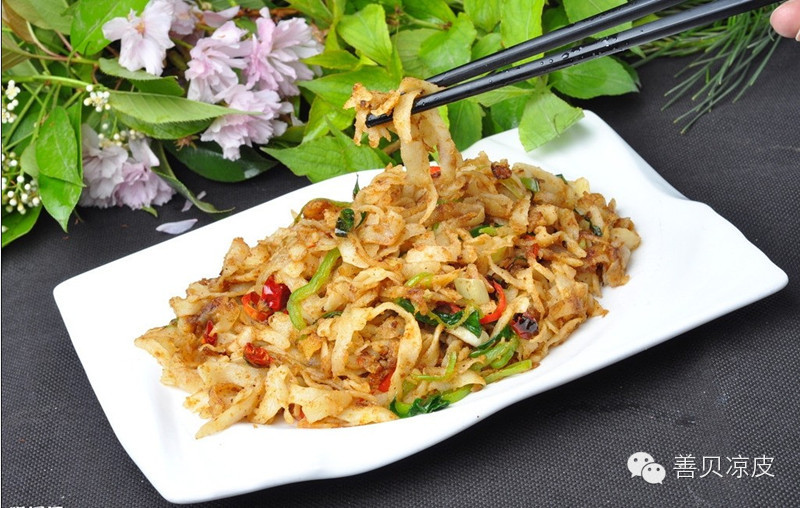 在楠溪江路家景花园边的善贝凉皮倒是让人意外。“善贝”谐音陕北,做的是陕北菜。而温州人喜欢吃扇贝,取名“善贝”,让陕北菜更接地气。