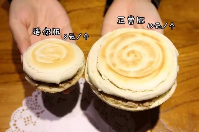 因为用料扎实,胃小的通常一个肉夹馍就饱了,想再吃点别的都没肚子塞!所以~他家出了个Mini版的肉夹馍~