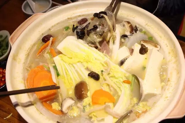 也可以直接把萝卜、山药、香菇、木耳、粉条、娃娃菜一股脑的倒进锅煮~吸足了汁儿的粉条好吃到现在想起来都流口水~