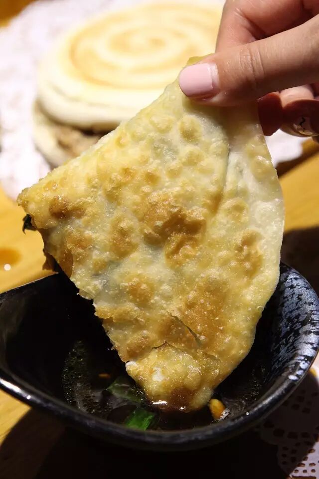 早上在上班上学的路上总喜欢买一个边走边吃,热乎乎的那叫个香!还可以选择蘸醋汁吃,也不错~