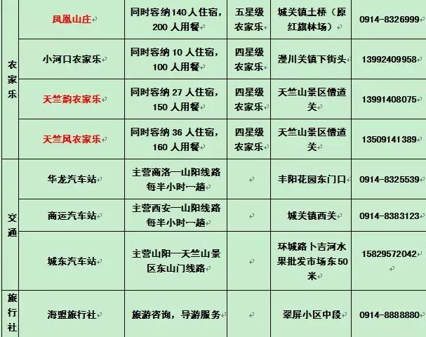 食宿信息概况:有位于陕西天竺山国家森林公园东山门8家度假山庄、30余户农家乐、山上20余座森林生态木屋及山阳县城10余家酒店可供选择。预定酒店和了解详情请登录陕西天竺山国家森林公园官网商务版块查询。