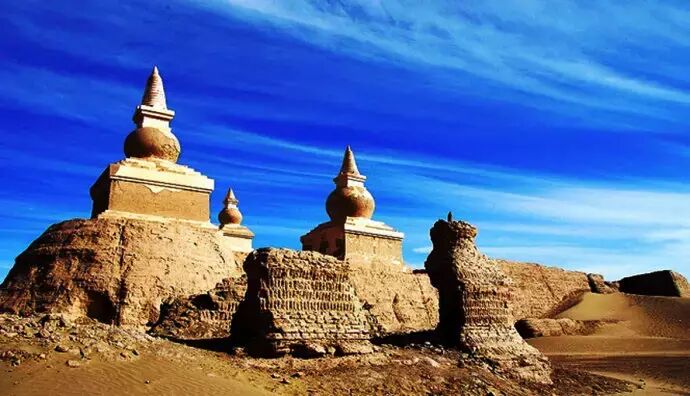 早06:00乘大巴车赴额济纳旗(约420公里,行车约6小时)。途中参观【黑水城】。黑水城,蒙古语称为“哈拉浩特”,又称黑城,位于干涸的额济纳河(黑水)下游北岸的荒漠上,始建于西夏,是现今已知唯一一座用党项人语言命名的城市,因曾经有黑水河流经这里而得名,是“古丝绸之路”以北保存最完整的一座古城遗址。
