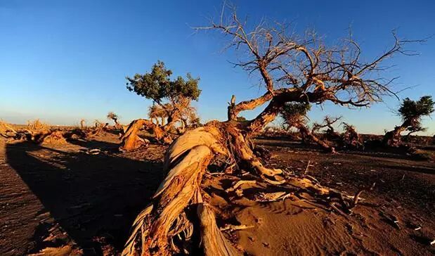 之后前往游览【怪树林】。苍凉的“怪树林”,据说是黑将军及众将士不死的灵魂所在。其实是因不合理开发,引发额济纳河断流,致使沿河两岸的大片胡杨林因缺水而枯死。胡杨特有的耐腐蚀性使枯死树干依然直立在戈壁荒漠之上,形成形态怪异的悲凉景观。后可自费参观策克口岸(自理100元/人)(约77公里,行车约1小时)。策克口岸是阿拉善盟对外开放的唯一国际通道,是内蒙古、陕、甘、宁、青五省区所共有的陆路口岸,同时也是内蒙古第三大口岸。