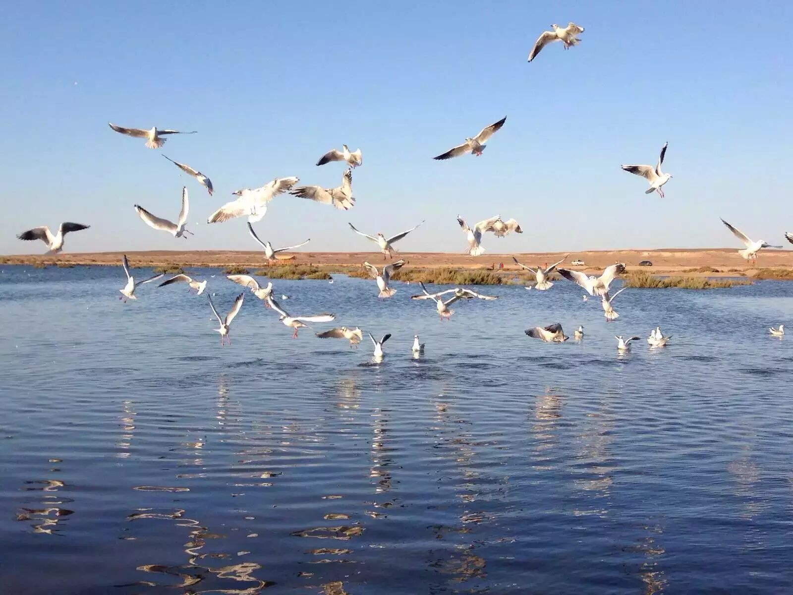 早05:00出发前往【居延海】(约40公里,行车40分钟 )。居延是匈奴语,《水经注》中将其译为弱水流沙,在汉代时曾称其为居延泽,魏晋时称之为西海,唐代起称之为居延海,现称天鹅湖。居延海是一个奇特的游移湖,它的位置忽东忽西,忽南忽北,湖面时大时小,时时变化着,是—个曾经消失而又复活的湖泊、一个事关中国西部生态安全的湖泊、一个漂浮着边塞诗歌的湖泊。