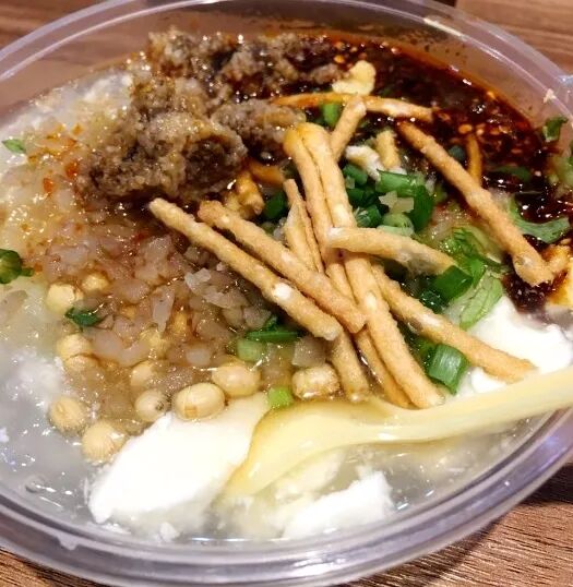 芳华街上,藏着的都是苍蝇馆子。牛肉豆腐脑很入味,在大头菜、馓子、香菜和黄豆的多重味觉冲击下,味道被完美地演绎了出来,是很正统的乐山味道。