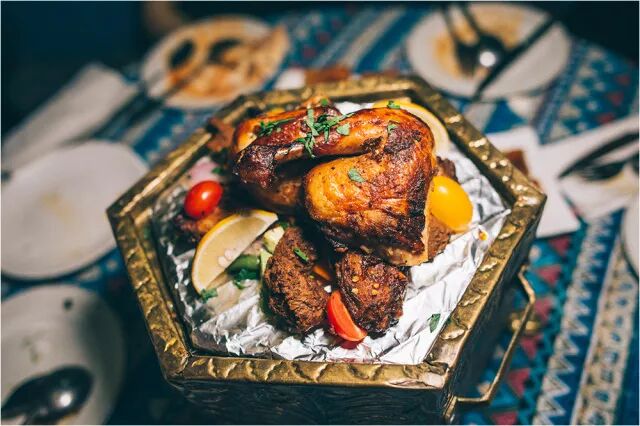 苏坦菜单上一直有道明星中的明星产品,12年经典——苏坦小烤鸡。从选材到制作都是特别考究,精选三黄仔鸡,用20几种中东香料经过12小时的腌制,烤到表皮金黄酥脆,而里面细嫩多汁……慕名而来的人早已不计其数,吃完后再买一只打包带走的更是不甚枚举。