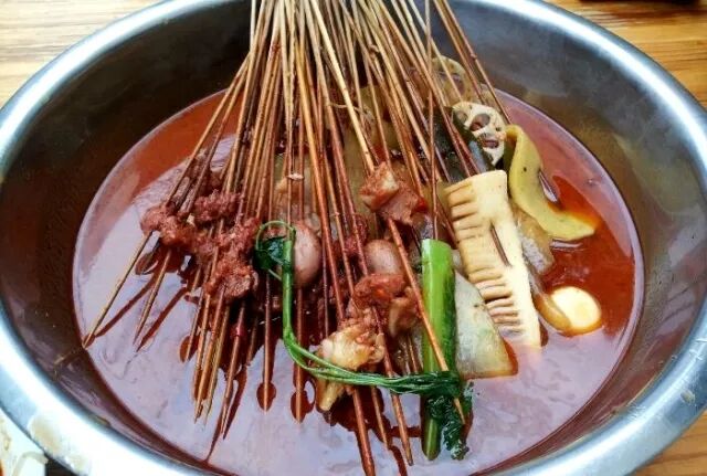 红又红串串就是老串串味道,不像现在开的那种牛油火锅味道的串串,串串就应该是串串味道(相信你们能懂我在说什么……),有很明显的中药香料味道。