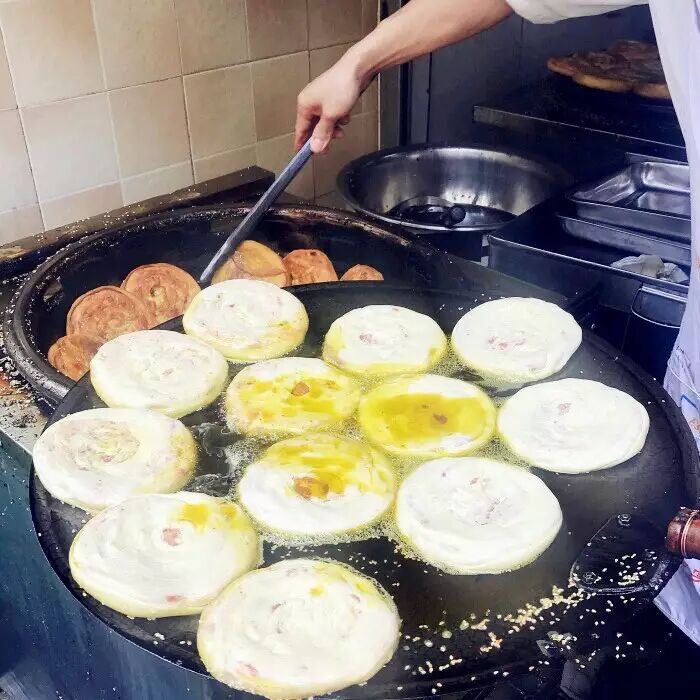 外皮儿酥脆,馅儿透过咀嚼,能感受到面粉的香气中裹着馅儿料的油爆~再来一碗肥肠粉,简直不摆了!
