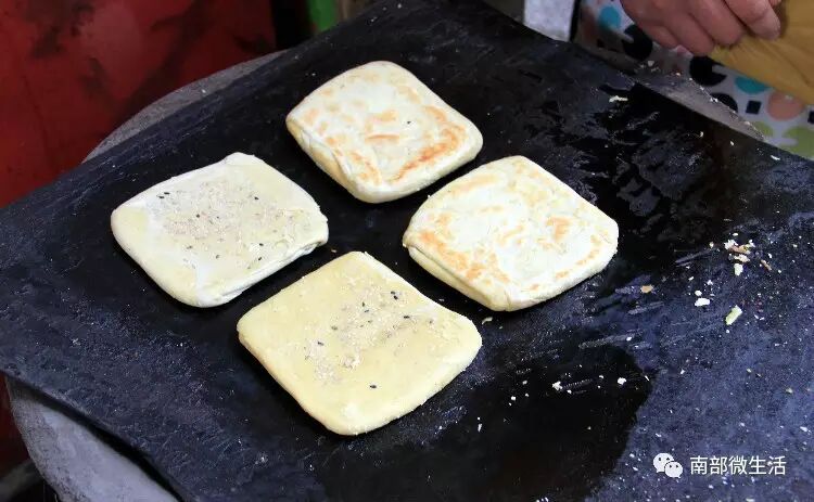 看到了吧,这是方锅盔,还有圆的。小时候我印象中吃的都是圆锅盔。多年不回家,连锅盔都变了。