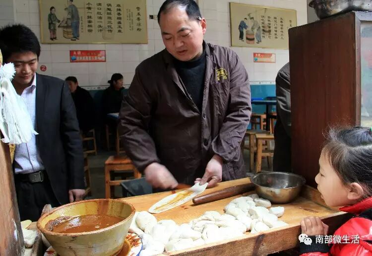 上料(锅盔里面是要放作料的,手艺好的还能做出千层锅盔,香酥的很)